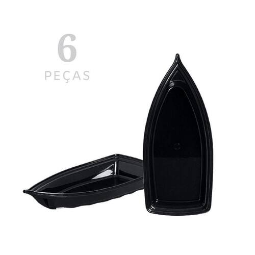 Kit 06 Barca Barco Para Açaí Sushi Sashimi Bandeja 22 Preto