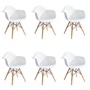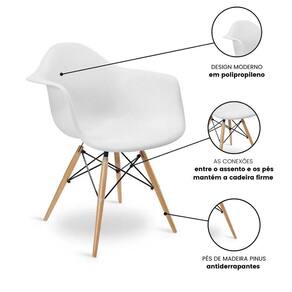 Kit 06 Cadeira Eiffel com Braço, sua concha ergonômica é produzida em PP (polipropileno) e conta com qualidade única, tendo firmeza e conforto em seu encosto. Seus pés são feitos em madeira e aço com peças antiderrapantes, proporcionando segurança e resistência. Muito mais que um item funcional, com braço é uma peça de decoração moderna e pode ser usada fazendo uma linda composição. Limpeza e Manutenção: Utilizar pano macio levemente umedecido com água, seguido de pano seco. Não utilizar produtos químicos, abrasivos ou limpeza à vapor. Sua Cadeira Eiffel com braço irá desmontada, porém não é necessária a contratação de um profissional para montagem. Acompanha manual de montagem.