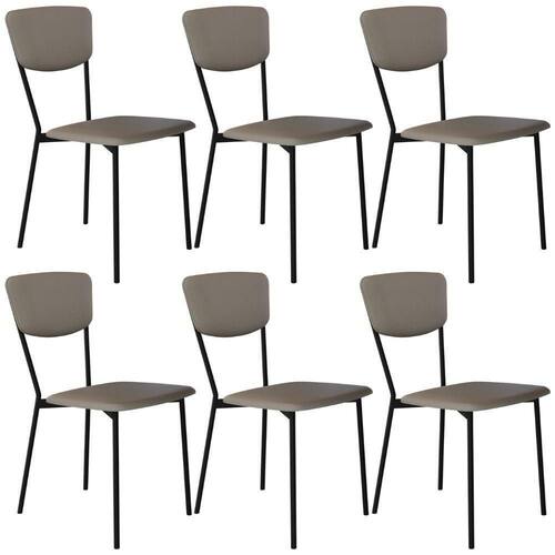 Color: Cinza | ColorFamily: Cinza | ColorSimple: Cinza | ColorSupplier: Cinza | Material: Estrutura em Aço, MDP, Revestimento em Couro sintético e espuma | MaterialFamily: Aço, MDP, Couro sintético e espuma | Model: Village | OriginCountry: Brasil | OriginState: PR | ProductContents: 06 Cadeiras | ProductHeight: 249 cm | ProductInstructions: Produto para uso em ambiente interno, nao devendo ficar exposto ao sol, calor e umidade excessivos. | ProductLength: 53 cm | ProductWarranty: 90 dias após o recebimento do produto | ProductWeight: 39 kg | ProductWidth: 43 cm | SizeDescription: Altura: 249 cm x Largura: 43 cm x Profundidade: 53cm | SupplierSimpleName: Kit 06 Cadeira Para Sala de Jantar Village Preto C01 Courino Cinza - Lyam Decor