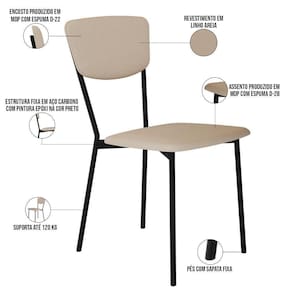 Color: Areia | ColorFamily: Areia | ColorSimple: Areia | ColorSupplier: Areia | Material: Estrutura em Aço, MDP, Revestimento em Linho e espuma | MaterialFamily: Aço, MDP, Linho e espuma | Model: Village | OriginCountry: Brasil | OriginState: PR | ProductContents: 06 Cadeiras | ProductHeight: 249 cm | ProductInstructions: Produto para uso em ambiente interno, nao devendo ficar exposto ao sol, calor e umidade excessivos. | ProductLength: 53 cm | ProductWarranty: 90 dias após o recebimento do produto | ProductWeight: 39 kg | ProductWidth: 43 cm | SizeDescription: Altura: 249 cm x Largura: 43 cm x Profundidade: 53cm | SupplierSimpleName: Kit 06 Cadeira Para Sala de Jantar Village Preto C01 Linho Areia - Lyam Decor