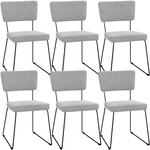 O espetáculo que é o KIt 06 Cadeiras Decorativas Estofada Para Sala De Jantar Base Em Aço Allana L02 Bouclê Cinza - Lyam Decor vem para agregar ainda mais valor na decoração da sua casa. Sua estrutura em aço remete-nos ao estilo industrial que surgiu em Nova York no século XX, já o assento e encosto estofados trazem equilíbrio e conforto criando a combinação perfeita para o ambiente. Cabe mencionar também o revestimento em bouclê que possui textura incrível e acabamento impecável.