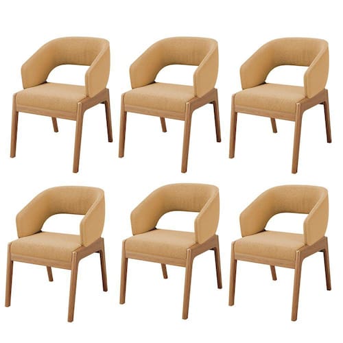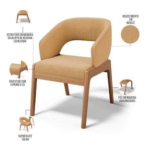 Kit 06 Cadeiras de Jantar e Estar Living Estofada Lince L02 Bouclê Mostarda - Lyam Decor - Amarelo Ouro