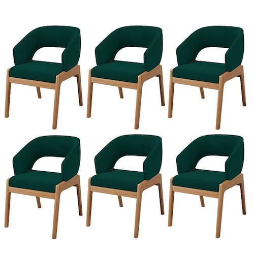 Kit 06 Cadeiras De Jantar E Estar Living Estofada Lince L02 Bouclê Verde - Lyam Decor