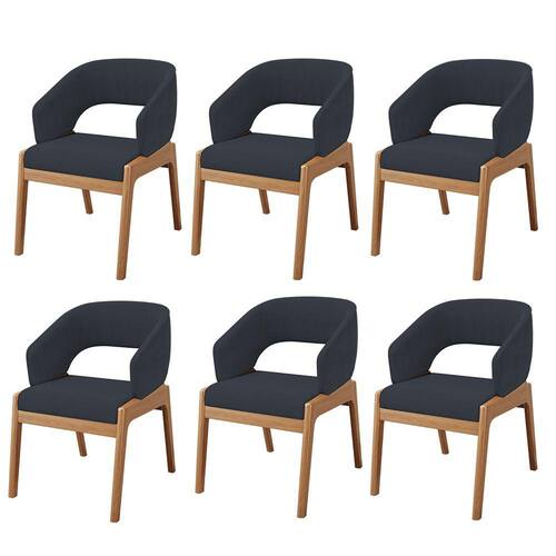 Kit 06 Cadeiras de Jantar e Estar Living Estofada Lince L02 Suede Preto - Lyam Decor