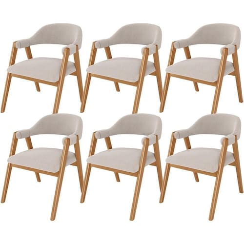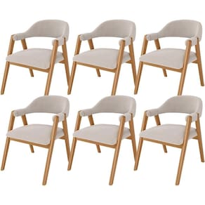 O Kit 06 Cadeiras de Jantar e Estar Living Estofada Nadja, das Lyam Decor, é a escolha perfeita para criar uma sala de jantar moderna e acolhedora. Com seu design curvo e pés de madeira maciça envernizada, essa cadeira estofada traz elegância e sofisticação ao ambiente. Além disso, é tapeçada com espuma d-26, o que proporciona um conforto excepcional, permitindo que você desfrute de momentos incríveis à mesa. Já o design orgânico combina beleza e modernidade, tornando-a uma peça única, enquanto os braços adicionam um toque extra de conforto e estilo.