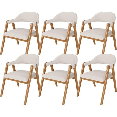 O Kit 06 Cadeiras de Jantar e Estar Living Estofada Nadja, das Lyam Decor, é a escolha perfeita para criar uma sala de jantar moderna e acolhedora. Com seu design curvo e pés de madeira maciça envernizada, essa cadeira estofada traz elegância e sofisticação ao ambiente. Além disso, é tapeçada com espuma d-26, o que proporciona um conforto excepcional, permitindo que você desfrute de momentos incríveis à mesa. Já o design orgânico combina beleza e modernidade, tornando-a uma peça única, enquanto os braços adicionam um toque extra de conforto e estilo.