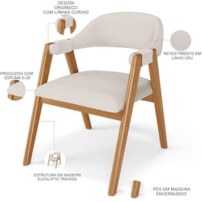A Cadeira Nadja é o equilíbrio perfeito entre funcionalidade e design, uma vez que pode facilmente ser utilizada em diversos ambientes, como espaços comerciais, recepção de hotel e eventos, até como poltrona para sala de estar. Adicione esse elemento indispensável à sua decoração e transforme qualquer ambiente em um lugar especial. Não perca a oportunidade de adquirir esse conjunto de cadeiras de jantar que vai encantar a todos.