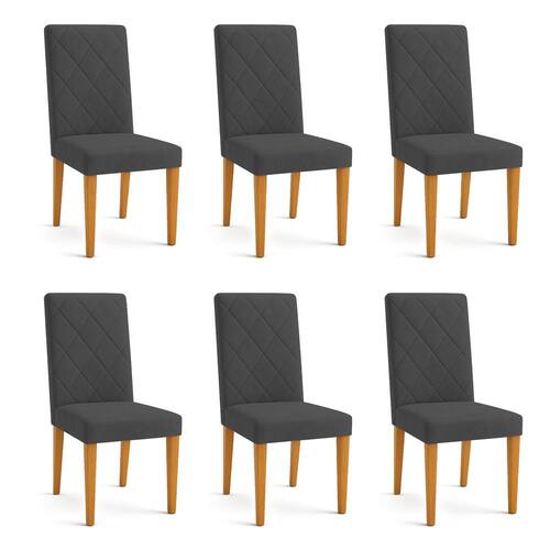 Kit 06 Cadeiras de Jantar Estofada Siena Veludo Pés Trapézio Castanho - Pallazio - Grafite