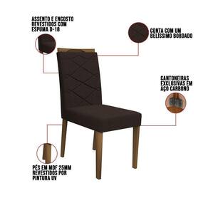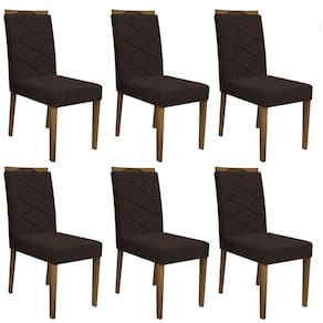 Que tal esse Kit Lais? As cadeiras contam com uma ótima resistência e apresentam maior maciez. O conjunto de 06 Cadeiras Lais, produzido com Pés na cor Imbuia em mdf 25mm, que oferece alta resistência e qualidade ao móvel, cantoneiras de travamento em Aço Carbono, seu estofamento é com espuma de densidade D-18, revestido em tecido Veludo no tom Café. Se você gostou do nosso Kit, não perca tempo e adquira já o seu!