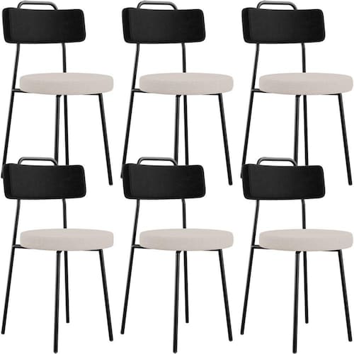 Amplamente moderna, dispondo de muito realce e design singular, o Kit 06 Cadeiras Decorativas Estofada Para Sala Jantar Barcelona L02 Couríssimo Preto Linho Bege - Lyam vem com a personalidade e elegância que sua decoração merece! Estruturada em aço carbono, contrasta lindamente com o encosto e assento estofados, cabe mencionar ainda seu revestimento em Couríssimo e linho, é confeccionada por materiais de excelente qualidade, extremamente resistentes e aconchegantes.