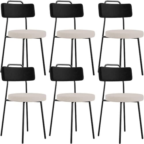 Amplamente moderna, dispondo de muito realce e design singular, o Kit 06 Cadeiras Decorativas Estofada Para Sala Jantar Barcelona L02 Couríssimo Preto Linho Bege - Lyam vem com a personalidade e elegância que sua decoração merece! Estruturada em aço carbono, contrasta lindamente com o encosto e assento estofados, cabe mencionar ainda seu revestimento em Couríssimo e linho, é confeccionada por materiais de excelente qualidade, extremamente resistentes e aconchegantes.