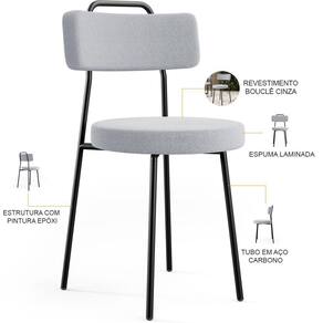 Amplamente moderna, dispondo de muito realce e design singular, o Kit 06 Cadeiras Decorativas Estofadas Para Sala De Jantar Barcelona L02 Bouclê Cinza - Lyam Decor vem com a personalidade e elegância que sua decoração merece! Estruturada em aço carbono, contrasta lindamente com o encosto e assento estofados, cabe mencionar ainda seu revestimento em Couríssimo, é confeccionada por materiais de excelente qualidade, extremamente resistentes e aconchegantes.