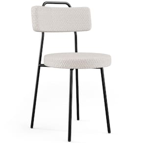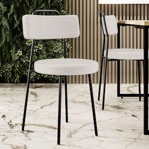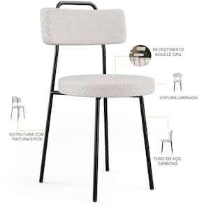 Amplamente moderna, dispondo de muito realce e design singular, o Kit 06 Cadeiras Decorativas Estofada Para Sala De Jantar Barcelona L02 Bouclê Cru - Lyam Decor vem com a personalidade e elegância que sua decoração merece! Estruturada em aço carbono, contrasta lindamente com o encosto e assento estofados, cabe mencionar ainda seu revestimento em Couríssimo, é confeccionada por materiais de excelente qualidade, extremamente resistentes e aconchegantes.