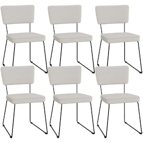 O espetáculo que é o Kit 06 Cadeiras Decorativas Estofada Para Sala De Jantar Allana L02 Bouclê Cru - Lyam vem para agregar ainda mais valor na decoração da sua casa. Sua estrutura em aço remete-nos ao estilo industrial que surgiu em Nova York no século XX, já o assento e encosto estofados trazem equilíbrio e conforto criando a combinação perfeita para o ambiente.