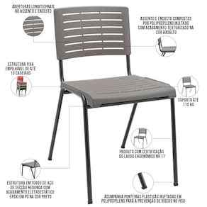 Além disso, design e funcionalidade se encontram, expressos no conforto térmico graças às aberturas longitudinais no encosto e assento, e na versatilidade de empilhar até dez unidades, de modo a facilitar o armazenamento e organização. Enfim, uma cadeira em polipropileno criada para transformar qualquer espaço com muito estilo. Aproveite e adicione agora mesmo ao seu carrinho!