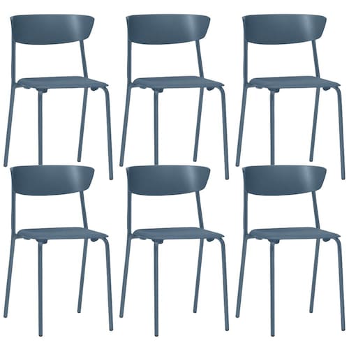 Características: Material do encosto e assento injetado em Polipropileno (PP) 100% reciclável, na tonalidade Azul. Pés em tubo de aço carbono de secção circular, com diâmetro 22mm e acabamento com pintura epóxi, na tonalidade Azul. Encosto com design curvo para maior conforto e apoio. Acompanha ponteiras injetadas em polipropileno para a prevenção de riscos no piso. Peso máximo suportado 120 kg. Estrutura fixa empilhável. Produto 100% Nacional.