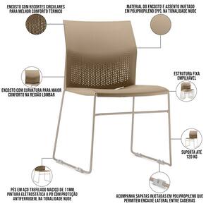 Material do encosto e assento injetado em Polipropileno (PP), na tonalidade Nude.