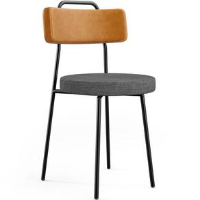 Revestimento do encosto em Couríssimo na cor Whisky e do assento em Linho na cor Cinza Escuro, com acabamento semi brilho.
