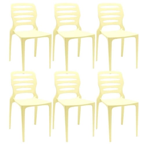 Altura da cadeira: 84 cm | Altura do assento a partir do solo: 45 cm | Color: Amarelo | ColorFamily: Amarelo | ColorSimple: Amarelo | ColorSupplier: Amarelo | Cor: Amarelo | Cor da estrutura da cadeira: Amarelo | Cor do assento: Amarelo | Cor do estofamento: na | Desenho do tecido: NA | É cadeira de balanço: Não | É dobrável: Não | É empilhável: Sim | Fabricante: Lyam Decor | Firmeza: na | Largura da cadeira: 44 cm | Largura do assento: 44 cm | Material: Termoplástico | Material do estofamento: na | MaterialFamily: Polipropileno | Model: Larsen | OriginCountry: Brasil | OriginState: PR | Peso máximo suportado: 180 kg | ProductContents: 06 Cadeiras | ProductHeight: 84 cm | ProductInstructions: Produto para uso em ambiente interno, nao devendo ficar exposto ao sol, calor e umidade excessivos. | ProductLength: 52 cm | ProductWarranty: 90 dias após o recebimento do produto | ProductWeight: 204 kg | ProductWidth: 44 cm | Profundidade da cadeira: 52 cm | Profundidade do assento: 48 cm | Requer montagem: Não | SizeDescription: Altura: 84 cm x Largura: 44 cm x Profundidade: 52 cm | SupplierSimpleName: Kit 06 Cadeiras Para Cozinha Área Gourmet Jardim Empilhável Larsen P03 Amarelo - Lyam Decor | Tempo de montagem: na