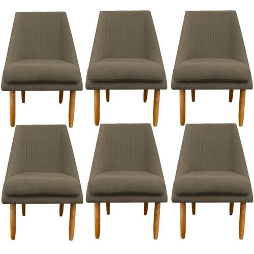 Kit 06 Cadeiras Para Sala De Jantar Ana Pés Palito Suede Marrom Rato - D'classe Decor