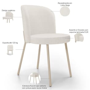 Cor: Bege | ColorSupplier: Bege | Fabricante: Lyam Decor | Model: Gavi | É empilhável: Não | OriginCountry: | ColorSimple: Bege | ProductWeight: 30 kg | ProductContents: 06 Cadeiras | ProductHeight: 105 | É dobrável: Não | Color: Bege | Cor do estofamento: Bege | ColorFamily: Bege | MaterialFamily: Madeira, Espuma, Bouclê | ProductLength: 101 | ProductInstructions: Produto para uso residencial em ambiente interno, não devendo ficar exposto diretamente ao sol, calo | Desenho do tecido: Liso | ProductWidth: 106 | ProductWarranty: 90 dias após o do produto | SizeDescription: 105 x 106 x 101 cm | Tempo de montagem: na | OriginState: PR | Cor do assento: Bege | Profundidade da cadeira: 53 cm | Material: Madeira, Espuma, Bouclê | Espessura do assento: na | Largura da cadeira: 44 cm | SupplierSimpleName: Kit 06 Cadeiras Para Sala de Jantar Cozinha Estofada Gavi Arena L02 Linho Bege - Lyam Decor | Requer montagem: Não | Altura do assento a partir do solo: 46 cm | Material do estofamento: Madeira, Espuma, Linho | Firmeza: Sim | É cadeira de balanço: Não | Profundidade do assento: 42 cm | Peso máximo suportado: 120 kg | Cor da estrutura da cadeira: Arena | Largura do assento: 42 cm | Altura da cadeira: 80 cm