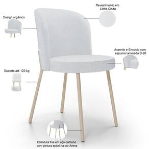 OriginState: PR | Color: Cinza | Largura do assento: 42 cm | Requer montagem: Não | ColorSimple: Cinza | ProductContents: 06 Cadeiras | Fabricante: Lyam Decor | ColorFamily: Cinza | SizeDescription: 105 x 106 x 101 cm | Peso máximo suportado: 120 kg | É empilhável: Não | Espessura do assento: na | ProductWeight: 30 kg | Cor do assento: Cinza | Altura da cadeira: 80 cm | Cor do estofamento: Cinza | Cor: Cinza | Material: Madeira, Espuma, Bouclê | ProductLength: 101 | ColorSupplier: Cinza | É dobrável: Não | SupplierSimpleName: Kit 06 Cadeiras para Sala de Jantar Cozinha Estofada Gavi Arena L02 Linho Cinza - Lyam Decor | ProductWarranty: 90 dias após o do produto | OriginCountry: | ProductHeight: 105 | Model: Gavi | ProductInstructions: Produto para uso residencial em ambiente interno, não devendo ficar exposto diretamente ao sol, calo | ProductWidth: 106 | Profundidade do assento: 42 cm | Cor da estrutura da cadeira: Arena | Largura da cadeira: 44 cm | Profundidade da cadeira: 53 cm | MaterialFamily: Madeira, Espuma, Bouclê | Firmeza: Sim | Material do estofamento: Madeira, Espuma, Linho | Tempo de montagem: na | Desenho do tecido: Liso | Altura do assento a partir do solo: 46 cm | É cadeira de balanço: Não