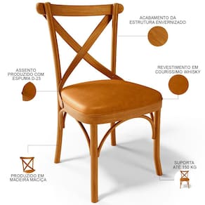 Inspirada no elegante mobiliário parisiense do século 19 e pensada para proporcionar máximo conforto, a Cadeira Ávila combina estilo e funcionalidade de uma maneira única. Estruturada em madeira maciça, possui detalhes curvilíneos que trazem suavidade e delicadeza a peça, seu acabamento envernizado a torna um mobiliário de destaque e trás durabilidade e confiança ao seu uso. Possui assento estofado, que proporciona ao seu usuário a sensação de comodidade ideal e ainda adiciona classe a qualquer ambiente. Seu design a torna uma peça versátil que abre portas a sua imaginação pois pode ser disposta em salas de jantar, estar, e espera, quartos, halls de entrada e cozinhas. Expresse seu bom gosto, e adquira já essa obra-prima da sofisticação!
