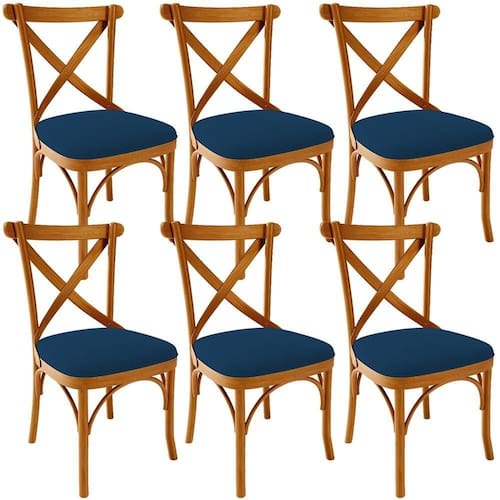 Kit 06 Cadeiras Para Sala De Jantar E Estar Living Estofada ávila L02 Suede Azul Marinho - Lyam