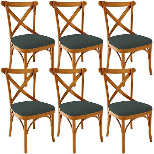 Inspirada no elegante mobiliário parisiense do século 19 e pensada para proporcionar máximo conforto, a Cadeira Ávila combina estilo e funcionalidade de uma maneira única. Estruturada em madeira maciça, possui detalhes curvilíneos que trazem suavidade e delicadeza a peça, seu acabamento envernizado a torna um mobiliário de destaque e trás durabilidade e confiança ao seu uso. Possui assento estofado, que proporciona ao seu usuário a sensação de comodidade ideal e ainda adiciona classe a qualquer ambiente. Seu design a torna uma peça versátil que abre portas a sua imaginação pois pode ser disposta em salas de jantar, estar, e espera, quartos, halls de entrada e cozinhas. Expresse seu bom gosto, e adquira já essa obra-prima da sofisticação! Dimensões do Produto (L x A x P) 49,5 x 86,5 x 55 cm Medidas Internas: Largura do assento: 44,5 cm Profundidade do assento: 43 cm Altura do encosto ao assento: 40 cm Largura total do encosto: 49,5 cm Altura do chão ao assento: 50 cm Largura do encosto: 38 cm Características: Estrutura em Madeira Maciça, com acabamento envernizado. Assento estofado com espuma D-23. Revestimento em Suede na cor Verde Musgo, de ótima qualidade. Peso suportado de até 150 kg. - Produto entregue montado. - Por se tratar de estofado as medidas podem ter uma pequena variação de até 3 cm. - A tonalidade do produto real poderá ter ligeira variação devido o lote de tecidos. - A limpeza deve ser feita com pano levemente umedecido em água limpa, sem esfregar, não utilizar produtos abrasivos, desengordurantes, álcool ou solvente. Observações importantes: - Produto para uso residencial em ambiente interno, não devendo ficar exposto diretamente ao sol, calor e umidade excessivos. - Pode haver alguma diferença de tonalidade entre a imagem e o produto real, por conta do tratamento de imagens e a calibração de cores do seu monitor. - As imagens são meramente ilustrativas, não acompanham objetos de decoração e eletrônicos. - Ao receber a mercadoria, o cliente deve verificar as condições da embalagem, caso haja alguma não assine o de . - Montagem, desmontagem e outras instalações serão de responsabilidade do cliente. Não nos responsabilizamos, no ato da , por subir escadas/elevadores ou pelo por guincho em apartamentos. Eventuais despesas são de responsabilidade do comprador. - Confira as dimensões do produto e certifique-se de que passará normalmente por supostos elevadores, portas, escadas e/ou corredores de sua residência. Color: Verde | ColorSupplier: Verde | ProductContents: 06 Cadeiras | MaterialFamily: Madeira | ColorSimple: Verde | OriginState: PR | OriginCountry: | ColorFamily: Verde | Material: Madeira Maciça | Model: Ávila | ProductHeight: 86 cm | ProductInstructions: Produto para uso em ambiente interno, nao devendo ficar exposto ao sol, calor e umidade excessivos. | ProductLength: 55 cm | ProductWarranty: 90 dias após o do produto | ProductWeight: 48 kg | ProductWidth: 49 cm | SizeDescription: Altura: 86 cm Largura: 49 cm Profundidade: 55 cm | SupplierSimpleName: Kit 06 Cadeiras Para Sala de Jantar e Estar Living Estofada Ávila L02 Suede Verde Musgo - Lyam