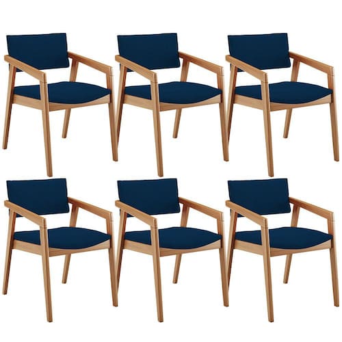 O Kit 06 Cadeiras Para Sala de Jantar Estar Living Giorgia B04 Suede Azul MArinho, da Lyam Decor, é perfeito para adicionar um toque moderno à sala de jantar. Com sua estrutura em madeira maciça envernizada, ela traz durabilidade e estilo para o ambiente. O assento e o encosto estofados e revestidos com tecidos alto padrão proporcionam conforto durante as refeições, além de serem fáceis de limpar.