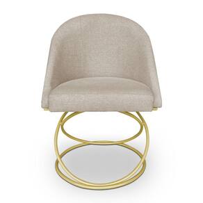 A base metálica em dourado confere à cadeira um aspecto industrial moderno, proporcionando um contraste encantador com o tecido em linho. Essa mistura de materiais agrega um ar contemporâneo e luxuoso ao ambiente, além de assegurar estabilidade e durabilidade à peça. O acabamento cuidadoso realça ainda mais a beleza e a qualidade do produto.