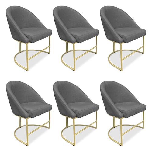 A base metálica em dourado confere à cadeira um aspecto industrial moderno, proporcionando um contraste encantador com o tecido em linho. Essa mistura de materiais agrega um ar contemporâneo e luxuoso ao ambiente, além de assegurar estabilidade e durabilidade à peça. O acabamento cuidadoso realça ainda mais a beleza e a qualidade do produto.