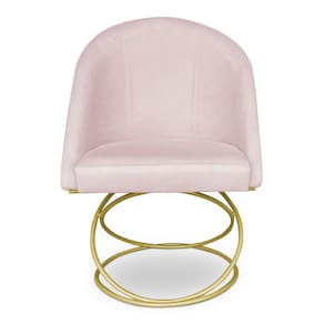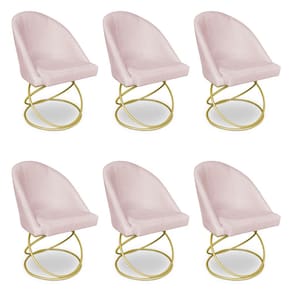 Kit 06 Cadeiras Poltrona de Jantar Bela Suede Rosa Bebê Base Metálica Luxo Dourado - Pallazio