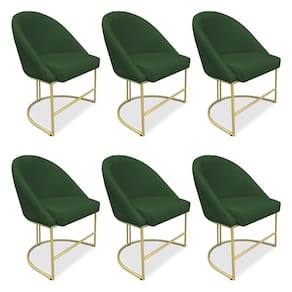Kit 06 Cadeiras Poltrona de Jantar Bela Suede Verde Base Metálica Industrial Dourado - Pallazio