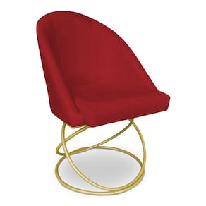 Kit 06 Cadeiras Poltrona de Jantar Bela Suede Vermelho Base Metálica Luxo Dourado - Pallazio