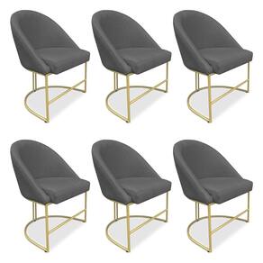 Kit 06 Cadeiras Poltrona de Jantar Bela Veludo Grafite Base Metálica Industrial Dourado - Pallazio