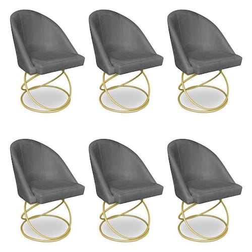 A base metálica em dourado confere à cadeira um aspecto industrial moderno, proporcionando um contraste encantador com o tecido em Veludo. Essa mistura de materiais agrega um ar contemporâneo e luxuoso ao ambiente, além de assegurar estabilidade e durabilidade à peça. O acabamento cuidadoso realça ainda mais a beleza e a qualidade do produto.