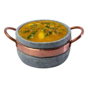 Medidas: Altura: 9 cm Diâmetro: 12 cm Peso: 1,2 kg Capacidade: 500 mlCaracterísticas: Material: Pedra-sabão natural, altamente resistente Alça em cobre: Toque de elegância e facilidade no manuseio Design artesanal: Cada peça é única, esculpida à mão por artesãos locais Benefícios térmicos: Mantém a comida quente por mais tempoVantagens de Cozinhar em Pedra-Sabão: Retém calor de forma eficiente Não altera o sabor dos alimentos Durabilidade incomparável Dica: Aqueça a cumbuca antes de servir para manter seus pratos quentes por mais tempo!