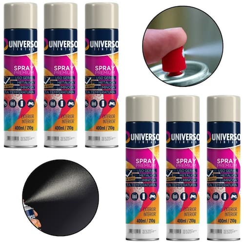 Kit 06 Latas Tinta Spray Branco Brilhante 400Ml Uso Geral