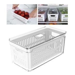 F6244 DESCRIÇÃO Kit com 6 unidades Organizador para Geladeira 02 - Porta Frios Duplo Transparente Organizador Clear Fresh Porta Queijo E Presunto OU. 02 - Organizadores De Geladeira 2,2L Com cesto Clear Fresh OU. 02 - Organizador para Geladeira Clear Fresh com Cesto Legumes Frutas e Verduras Com o organizador de geladeira Clear Fresh com Cesto , você terá organização e irá conservar e manter o frescor de seus alimentos por mais tempo, a tampa com ventilação ajustável mantém o nível de umidade ideal para cada tipo de alimento, mantendo-os frescos por mais tempo. Possui um cesto de drenagem que impede que a umidade acumulada se mantenha no alimento, evitando o murchamento e deterioração precoce Vantagens: - Ventilação e Humidade controlada; - Organização e otimização de espaço; - Com Cesto de Drenagem Removível; - Capacidade 5L. organizadores De Geladeira De Drenagem Com Respiradouro caixa de Armazenamento de Frutas Legumes E Vegetais conjunto Linha Clear Fresh OU