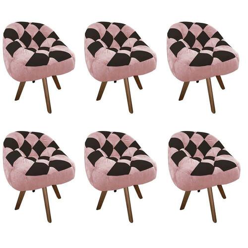Kit 06 Poltrona Paloma Escritório Sala Giratória Madeira Corino Rosa Bebê E Corino Marrom - Dominic Decor