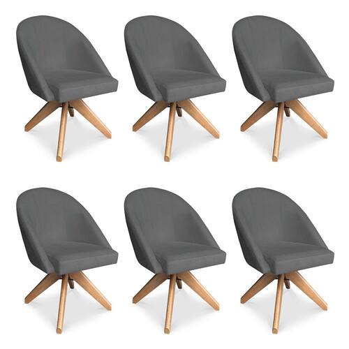 Kit 06 Poltronas Cadeira Giratória Bela Suede Base de Madeira - Pallazio - Grafite