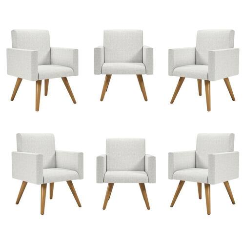 Kit 06 poltronas decorativa recepção oferta balaqui linho Cor: linho bege A poltrona nina traz muita segurança e conforto para seu ambiente. Sua estrutura é 100% em madeira eucalipto e todo conforto se deve a espuma com densidade d-23. Com um design sofisticado, a poltrona nina conta com acabamento em linho. Para quem indicamos nossas poltronas - para os amantes da leitura; - para trazer sofisticação para sala de estar; - para trazer aconchego em seu quarto; - para proporcionar comodidade ao seu escritório ou home office. E claro... Para presentear quem mais amamos Qual o material utilizado - tecidos suede; - espuma d-23; - percintas elásticas; - estrutura 100% madeira eucalipto; - pés madeira de eucalipto. Produto suporta até 100 kg. Garantia de fábrica de 03 meses contra defeito de fabricação. Você receberá: Seis poltronas nina pés palito. Instruções de montagem: Produto montado, sendo necessário apenas rosquear os pés. Observações importantes: -todos os produtos vão embalados com total segurança. - fotos meramente ilustrativas não acompanham objetos de decoração e eletros. - pode haver alguma diferença de tonalidade entre a imagem e o produto, por conta do tratamento de imagens e a calibração de cores da sua tela. Modo de limpeza: - limpar com pano limpo e moderadamente úmido Especificações técnicas Travamento da estrutura com grampos em aço galvanizados e parafusos com flange de 5 mm; Acento sustentado por percintas elásticas; Madeira de reflorestamento eucalipto; Tecido suede 100% poliéster. Dimensões Altura: 87 cm Largura: 61 cm Profundidade: 60 cm Peso: 9,5 kg