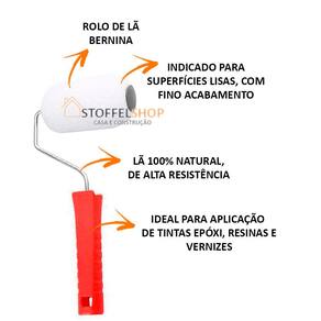 ROLO DE LÃ DE CARNEIRO BERNINA 9CMMARCA: ROMAREF:255-DESCRIÇÃO:-Rolo de lã de carneiro Bernina.-Altura da fibra: 5mm.-Indicado para superfícies lisas, com fino acabamento.-Ideal para aplicação de tintas epóxi, resinas e vernizes. -Lã 100% Natural, de alta resistência.-Indicado para superfícies lisas, com fino acabamento.-Fabricado pelo processo de termofusão.-MODO DE USAR:-Antes do primeiro uso, lave o rolo com água. -Carregue o rolo uniformemente de tinta com ajuda da bandeja de pintura ROMA-Comece a aplicação por uma extremidade da área a ser pintada, fazendo um "W".-Faça o movimento contrário preenchendo toda a área e afinando a camada da pintura.-COMO USAR:-Remova o excesso de tinta.-Tintas a base água: Lavar usando somente água.-Tintas óleo ou esmalte: Lavar com solventes minerais