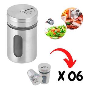 Kit 06 Saleiro Pimenteiro Tempero Aço Inox Regulagem e Visor Olá, Seja Bem-Vindo a nossa loja Oba Presentes ENVIO EM ATÉ 24 HORAS ÚTEISQualquer dúvida estamos à disposição. Porta Tempero Saleiro Pimenteiro Aço Inox Regulagem e Visor============================================================Design moderno e elegante, fica lindo complementando a decoração da sua cozinha, feito em vidro e com acabamento externo em Aço Inox com visor que permite ver o conteúdo interno. Produto resistente e com ótima durabilidade, tamanho ideal para um bom aproveitamento do saleiro. ============================================================Contém: 06 Unidades Especificações:- Material: Aço Inox e Vidro - Regulagem: 03 Furos 1,5mm / 04mm / 05mm - Medida: 08cm x 05cm cada - Peso: 120 gramas cada - Com Visor: Sim============================================================Devido à diferença entre monitores e iluminação diferentes, pode haver variação na tonalidade apresentada no anúncio. Medidas muito aproximadas. Os Produtos são 100% novos, oferecemos sempre o melhor produto com o melhor preço. Obrigado e Boas Compras