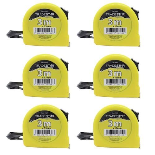 Trena de medição em aço pintado, com 3 metros de comprimento e 13 mm de largura. Trena com medidas em centímetros e polegadas. Corpo em ABS Amarelo Correia para transporte da fita