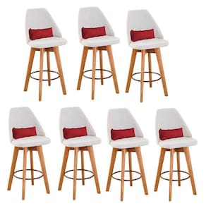 Kit 07 Banquetas Alta Maya Giratória Com Encosto Linho Bege Claro E Almofada Sintético Vermelho - Aurora Line Banqueta Maya Giratória - Aurora Line A Banqueta Maya possui assento e pés em madeira eucalipto com sistema giratório! Os pés contam com um reforço que proporciona um suporte de peso de até 120 Kgs.O assento é revestido com espuma D-23. Além de bonita e charmosa, vai trazer para seu ambiente elegância e proporcionará conforto para sua família e amigos nos momentos de lazer.