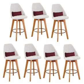 Kit 07 Banquetas Alta Maya Giratória Com Encosto Linho Bege Claro E Almofada Suede Bordô - Gat Magazine Banqueta Maya Giratória - GAT MAGAZINE A Banqueta Maya possui assento e pés em madeira eucalipto com sistema giratório! Os pés contam com um reforço que proporciona um suporte de peso de até 120 Kgs.O assento é revestido com espuma D-23. Além de bonita e charmosa, vai trazer para seu ambiente elegância e proporcionará conforto para sua família e amigos nos momentos de lazer.