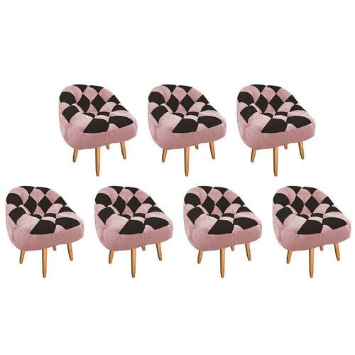 Kit 07 Poltrona Paloma Pé Palito Sintético Rosa Bebê e Sintético Marrom