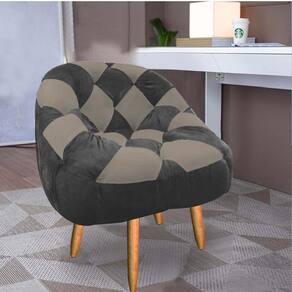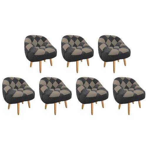 Kit 07 Poltrona Paloma Pé Palito Suede Grafite E Suede Cappuccino - Cinza